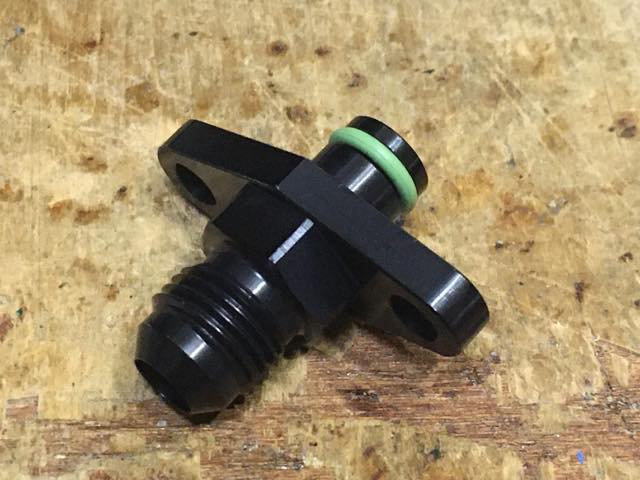 ヤフオクで「フューエル レギュレーターアダプター」として販売されていたもので、取り付け穴ピッチが32mmのものになる。また、パッキンが差し込まれる部分にとりついていて、差込部の外径はφ11mmである。