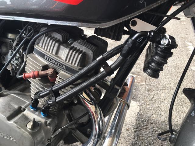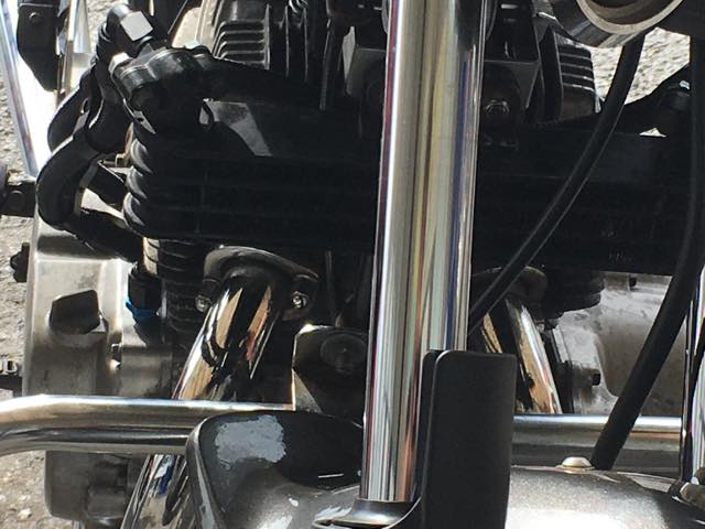 (ちなみに、CB-Fなんかは下側についているが、これはオイルクーラーが専用のオイルラインになっていて、冷えたオイルは一旦オイルパンに戻され、そこからエンジンに回る仕様になっているから可能なのだと推測している)