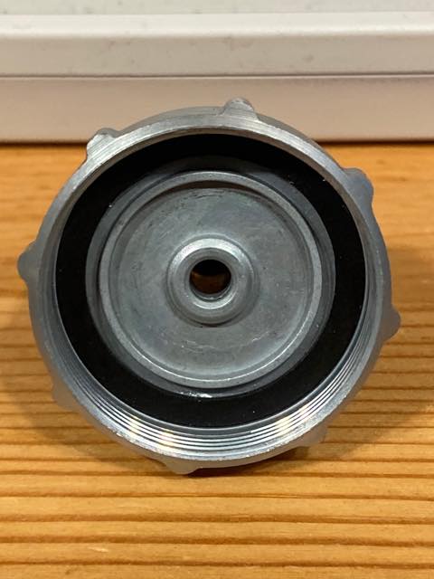 形状的には右の写真で見えるように古い方には背の低いリブがあるぐらいで、あとは同じかな。念のためだけど、茶色いのは経年劣化によるもので、要はガソリンの色が染み付いている。元は白だったハズなのよ。