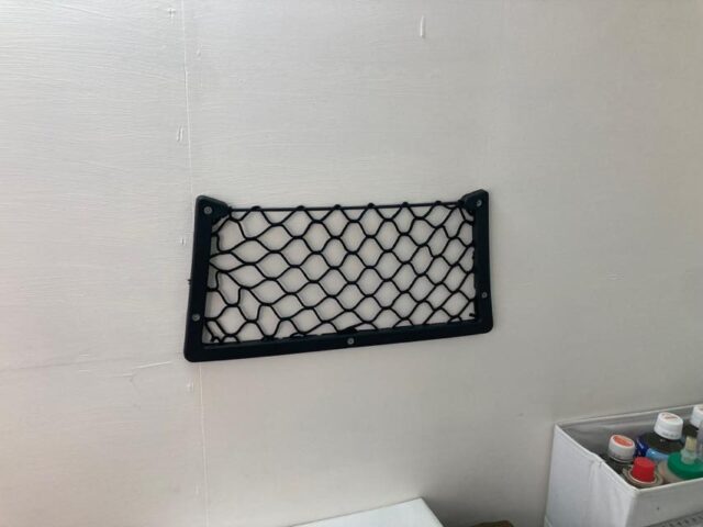 ネットで買った網ポケットを壁に装着した。