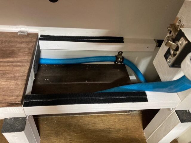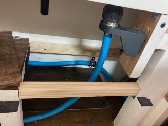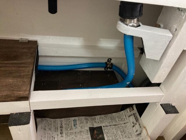 ちょっとホース避けを切りすぎたけど、まぁ良かろう。これで表向きの変な穴は概ねなくなったかな。あとはこの給水ホース周辺をもう少し綺麗にできたらねぇ…。