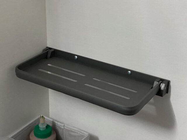 ネットで売ってた折りたたみ棚を実装してみた。ちょっとした小物を置ける棚って案外大事やからね。
