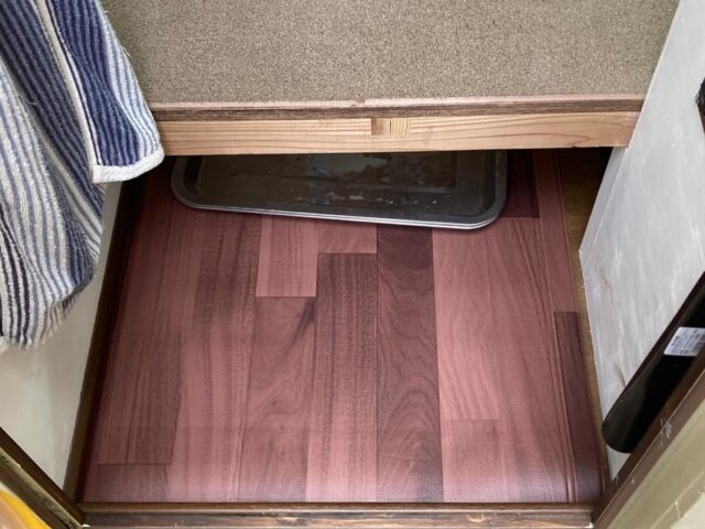 事前に買っておいたスタイロフォーム、この段階で最後の一枚を1割ぐらい使ったトコなので、購入量は正解だったようですな。残りはタイヤハウスの内側の断熱やドアの断熱にも使うので、最終的には半分ぐらいが残るのかしらね。