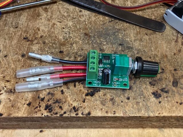 全力で回すとかなり煩いので、ファンコントローラを入れるコトに。某所で安物のパワーコントローラを買って、まずはこんなのを作成。