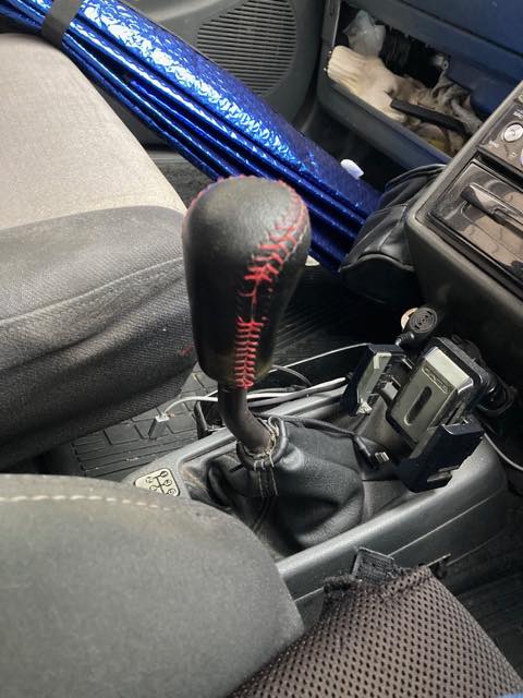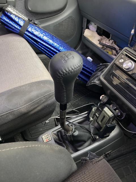 さすがに手触りに違和感が出るので、これまただいぶ前に買ってそのままにしていたスズキのアルト用純正革巻きシフトノブに交換するコトにした。