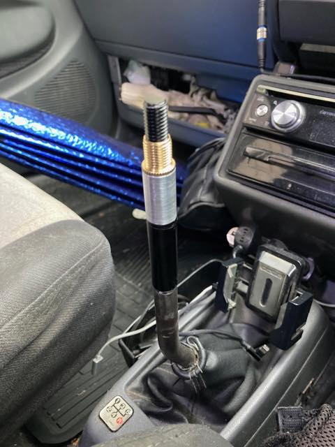 …のだけど、実はこれM12なのな。ホンダは伝統のM10-P1.5ってワケのわからないネジなので、そのままではスッコ抜ける。また、ウチのシフトレバーは少し曲げが入ってる関係か若干低い位置にあるので、今回は延長してM12化するコトに。
