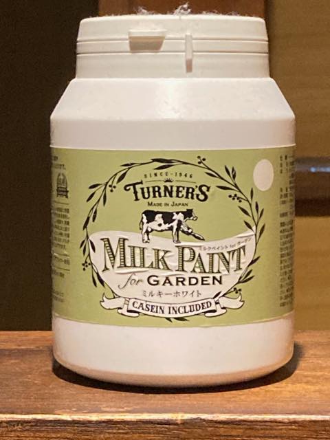 室内はシンナーの匂いが籠るのが嫌だったので水性を用いることに。選んだのはターナー色彩の「ミルクペイント for ガーデン」