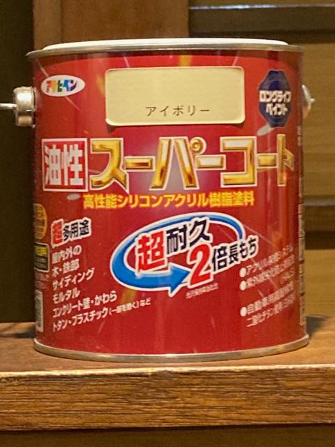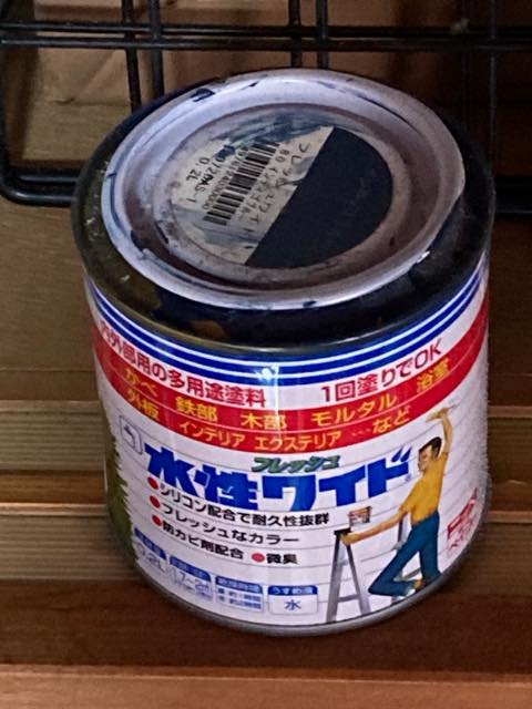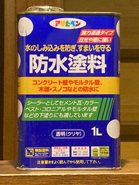 ここも油性のものを選んだ。アサヒペンの「防水塗料」(そのまんまやな)。