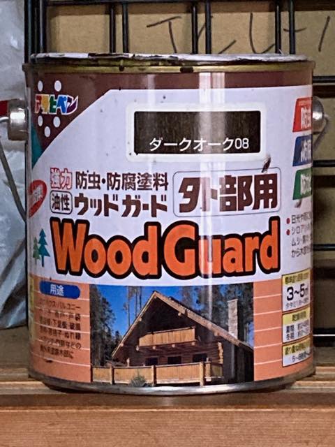 浸透系で油性のものを使うコトにしたので、選んだのはこれ。アサヒペンの「ウッドガード」。