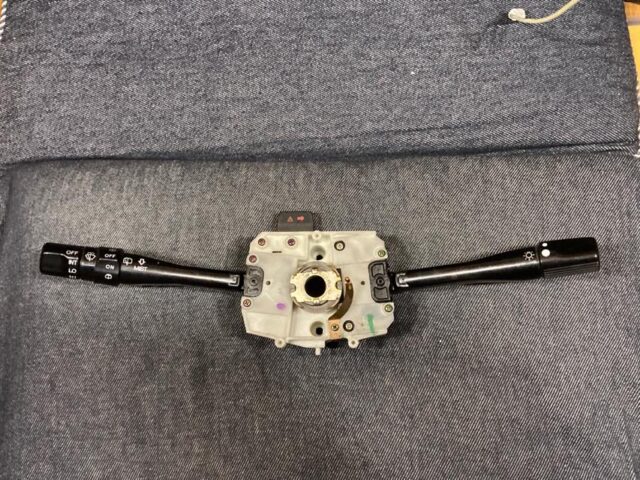 カラムカバーの固定ネジ4本を下から抜き、ハンドル直下のCリングを外した上でカラム下カバーを除去。その後、各スイッチユニットの固定ネジを外すと、右スイッチは右へ、左スイッチは左へ抜けるようになってるので、抜いてから背面のコネクタを外してやれば簡単に取り外せる。組み付けは逆の手順やね。Cリングをハメなおすのが結構めんどくさいけど。
