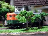 今日はレールの塗装、前回の下草の積み重ねと樹木の作成を試してみました。